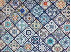 tkanina mozaika niebieska