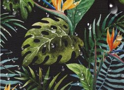tkanina dzika monstera na czarnym