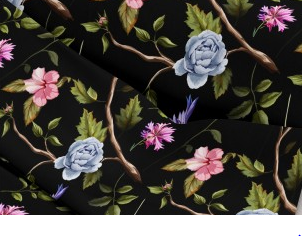 tkanina róże na czarnym