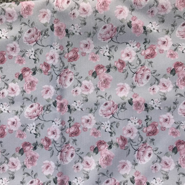 tkanina kwiatki na szarym
